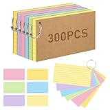 3ANSTEEPFlash Card, 300 Pcs Revision Cards Index Cards Ruled Flashcards Multicolor Kraft Paper Notecards Cue Cards with 6 Metal Binder Rings for Office School Home Study Record