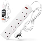2Wolf PowerWolf Power Extension Lead, 4 Gang, 2 Metre Extension Cable with UK 3 Pin Plug & Socket, Wall Mountable Power Strip for Home, Office & Appliances (White, 1 Pack)